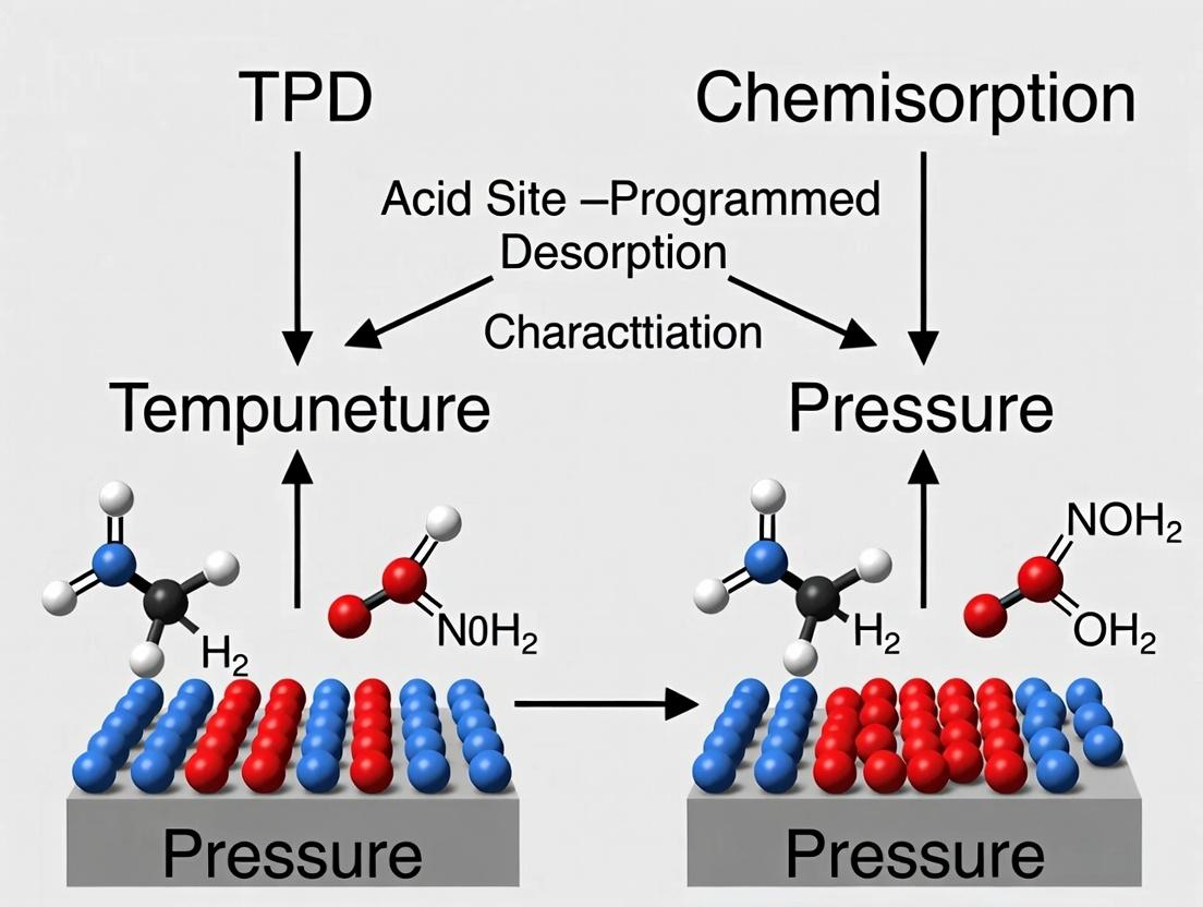 A key thesis in catalyst characterization is evaluating the effectiveness of TPD versus chemisorption methods for quantifying and differentiating Brønsted and Lewis acid sites.