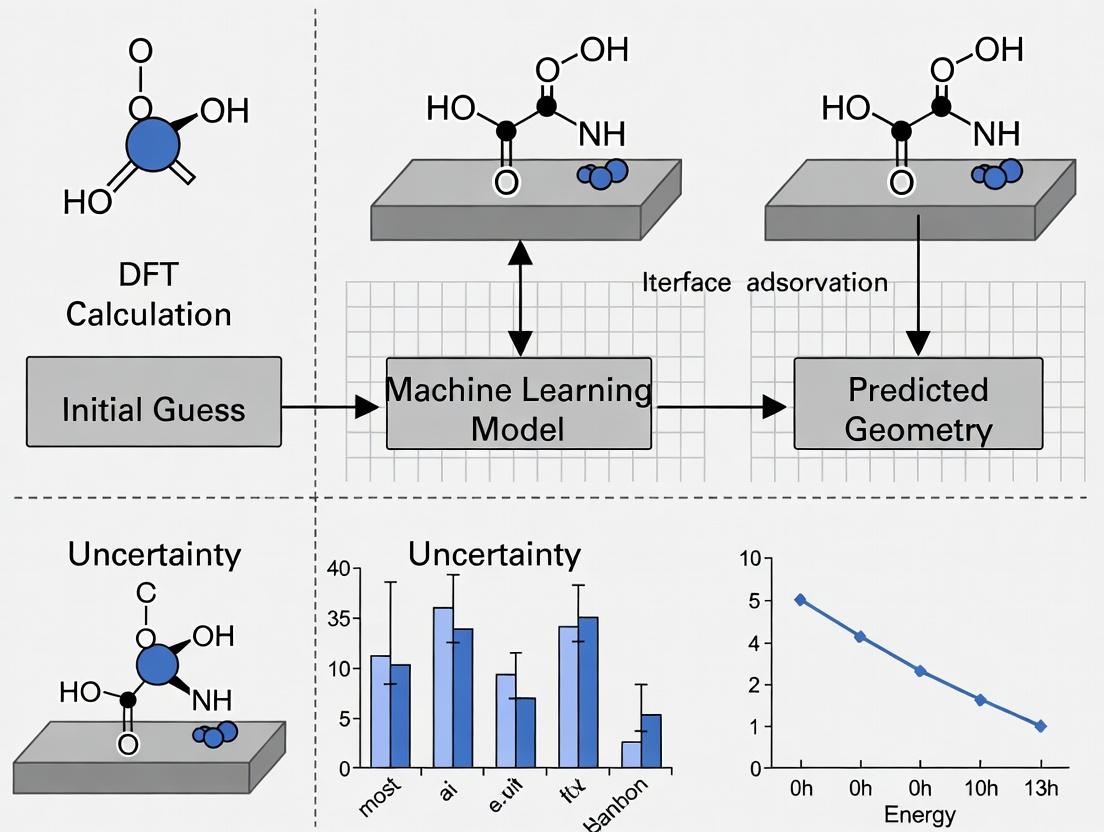 Objective: To iteratively and adaptively train a machine learning model to predict adsorption energies and guide DFT calculations toward promising geometries. Materials: Python ML stack (scikit-learn, GPyTorch), DFT software, initial dataset (~50 random configurations).